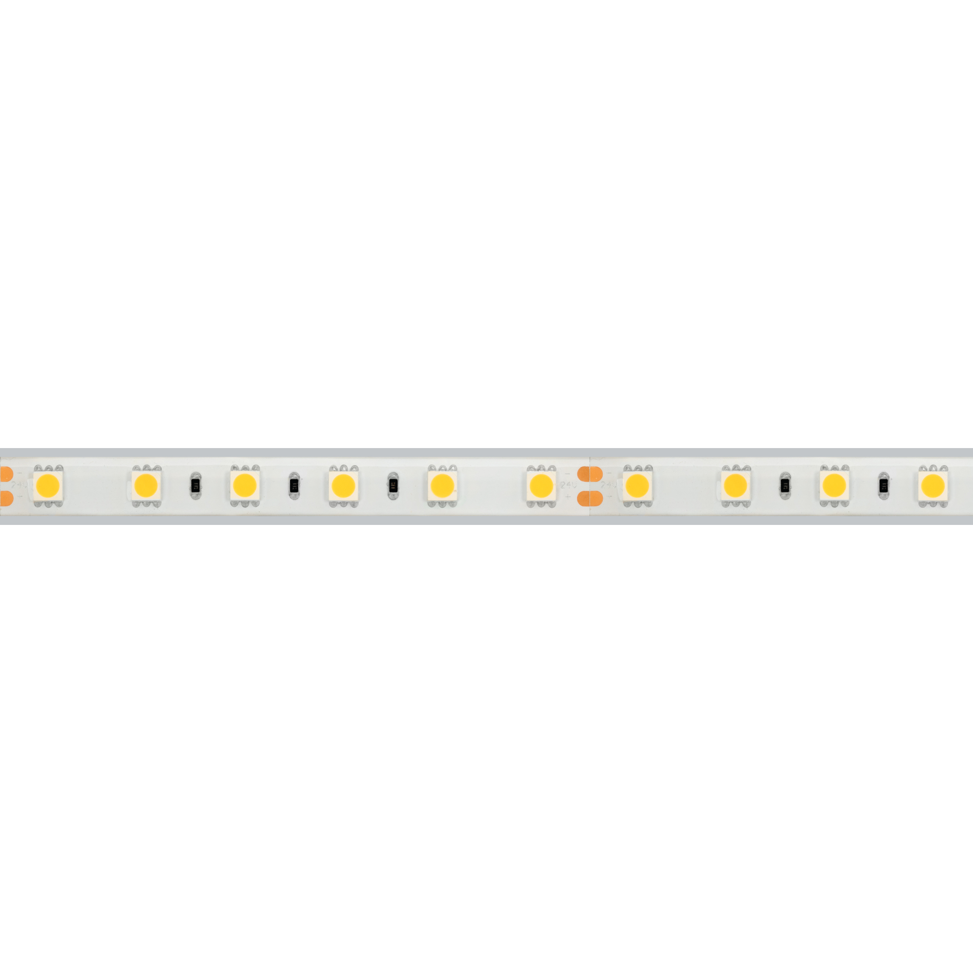 Герметичная светодиодная лента LUX шириной 13 мм в белой матовой силиконовой трубке с высокой степенью пылевлагозащиты IP66. Светодиоды SMD 5060 (60 шт/м) с теплым белым цветом свечения (2700 К), индекс цветопередачи CRI>85. Мощность 14.4 Вт/м, напряжение питания 24 В. Минимальный отрезок 100 мм (6 светодиодов). Освещение интерьеров и создание декоративной подсветки, оформление наружной рекламы и витрин. Возможно использование во влажных помещениях и на улице.