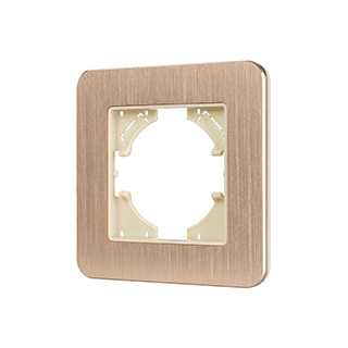 Рамка алюминиевая на 1 пост, под встраиваемый механизм. Цвет - золотой. Среднего уровня герметичности IP20. Ориентация монтажа - горизонтальная (основным ориентиром служат посадочные выступы для накладки механизма).