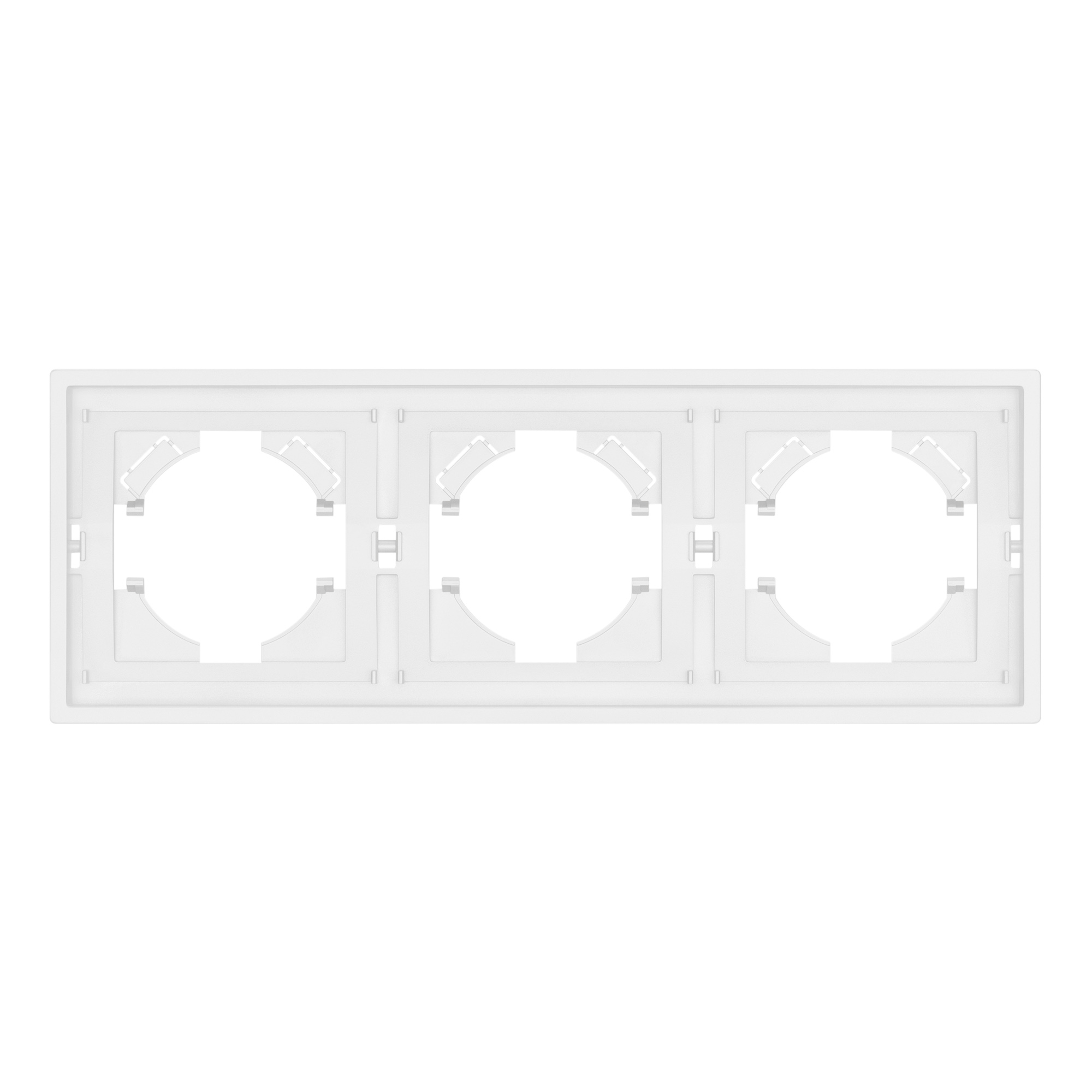 Рамка пластиковая на 3 поста, под встраиваемый механизм. Цвет - белый. Среднего уровня герметичности IP20. Ориентация монтажа горизонтальная.